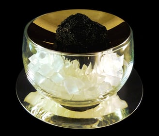 Servizio di caviale personale H. Metallo argentato et dorato, vettro di Murano.