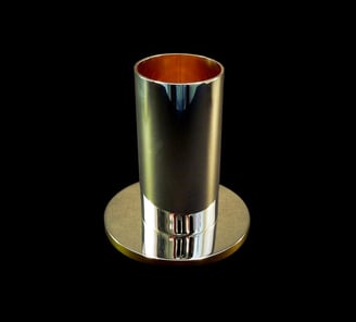Shot e sottobicchiere H. Metallo argentato e dorato.